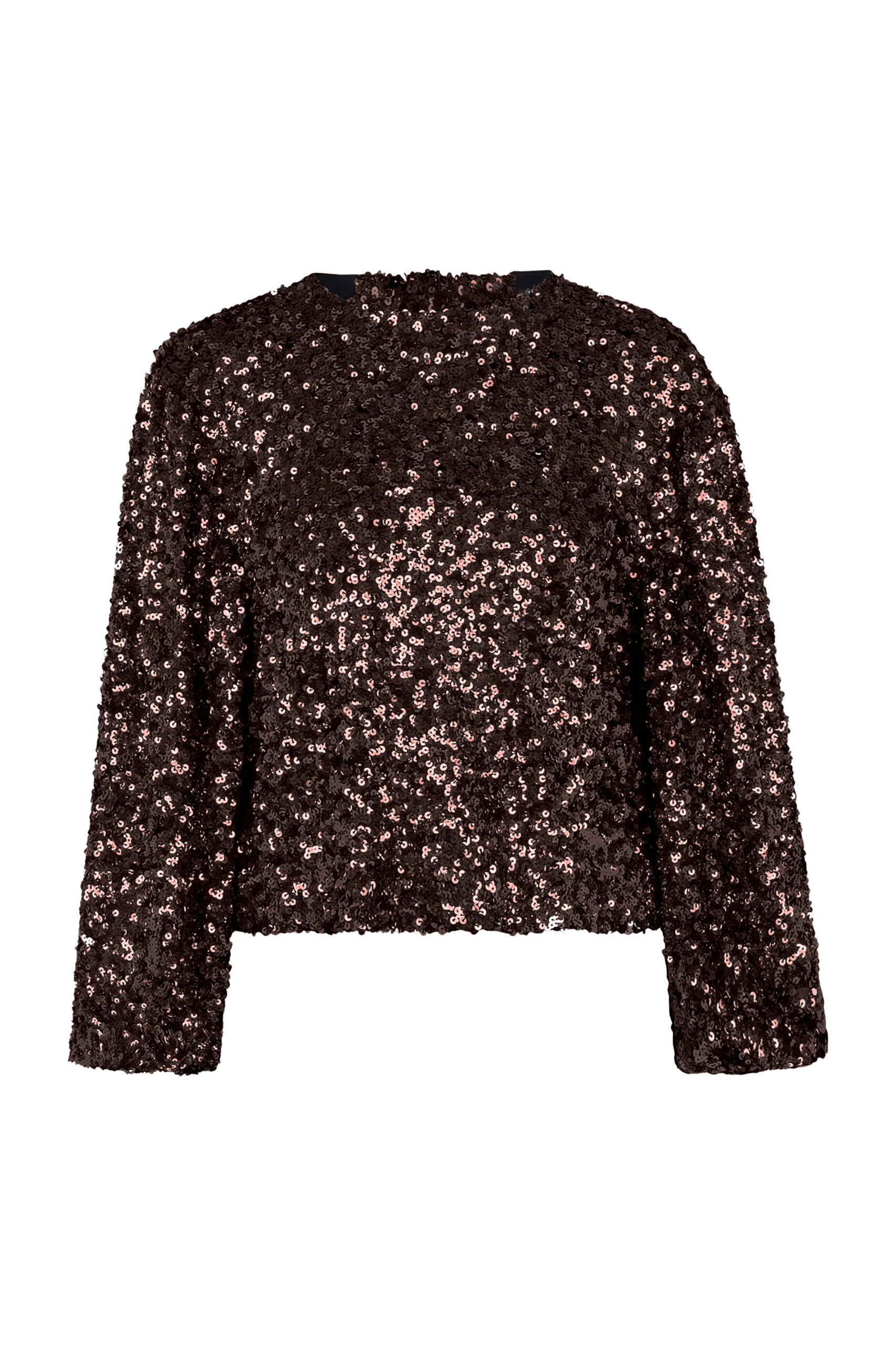 De Blom 2way sequins top van Studio Anneloes is gemaakt om in te stralen. De glinsterende pailletten in een warme Espresso kleur vangen prachtig het licht op. De soepele voering gemaakt van Travelstof aan de binnenkant zorgt voor een prettige pasvorm en maakt de top fijn om te dragen.