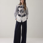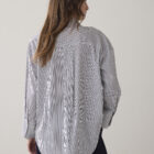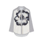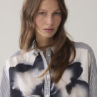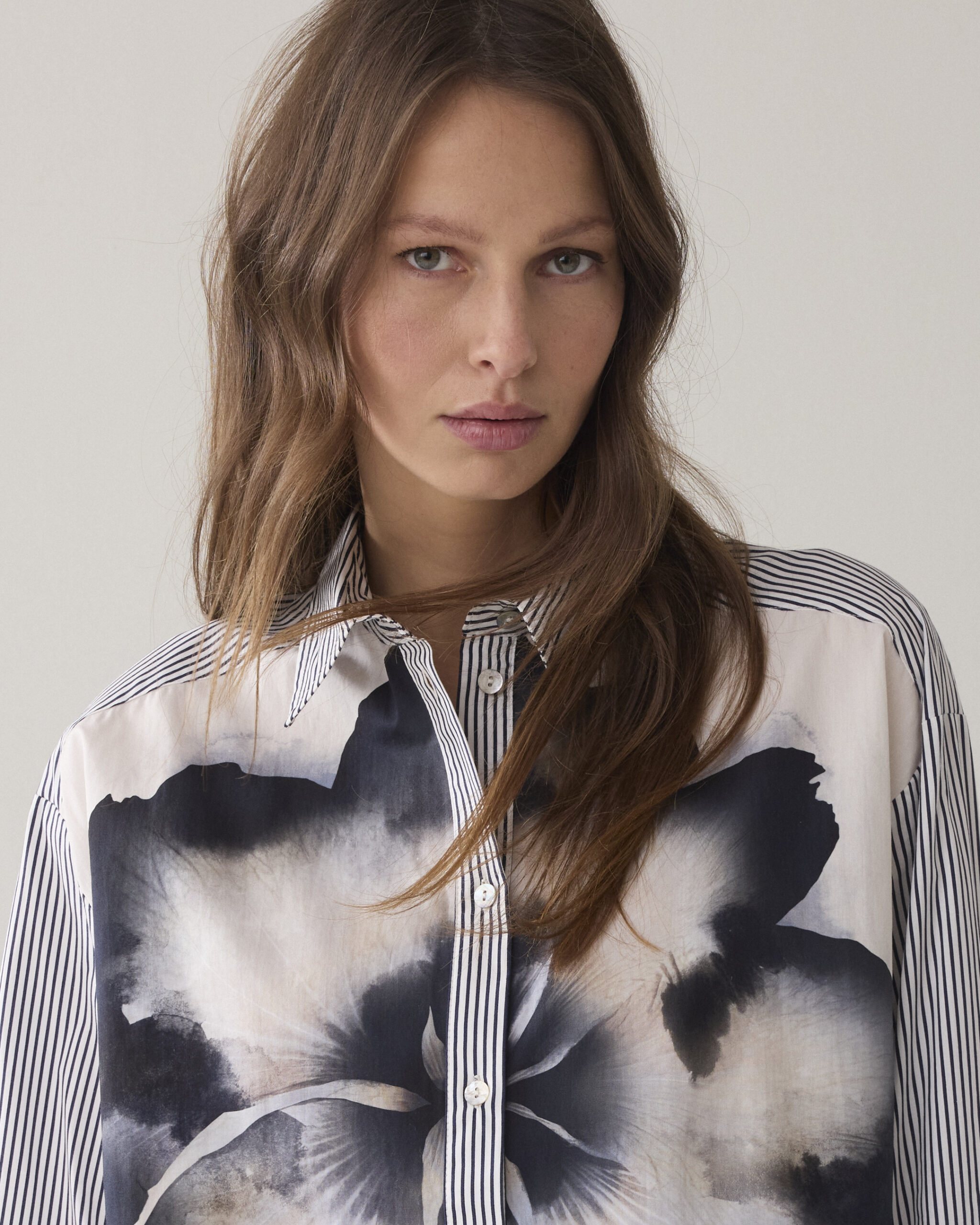 Deze ruimvallende overhemdblouse combineert een geprinte streep met een unieke bloemenprint. De blouse heeft een verlaagde schoudernaad en verstelbare manchetten.