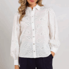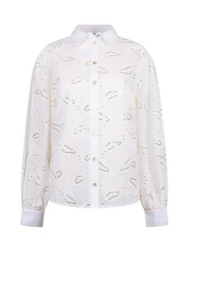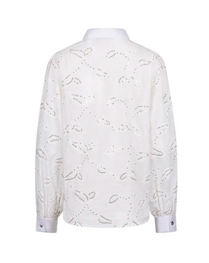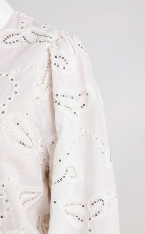 De Milanova Blouse is een elegante witte blouse met subtiele pailletten die elke outfit een vleugje glamour geeft. Tijdloos, chic en perfect voor zowel dag als avond. Combineer met de Abby Bleached Denim voor een stijlvolle, moderne look met een sprankelende twist.