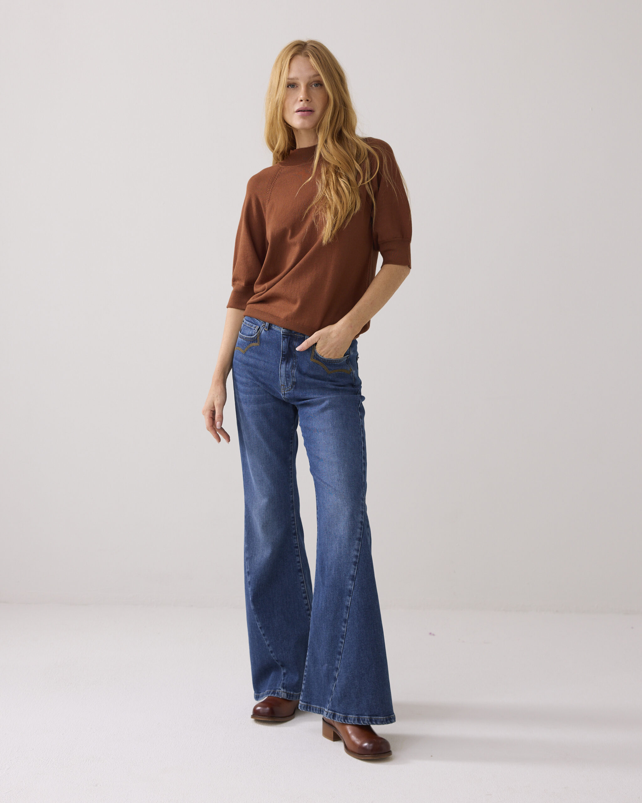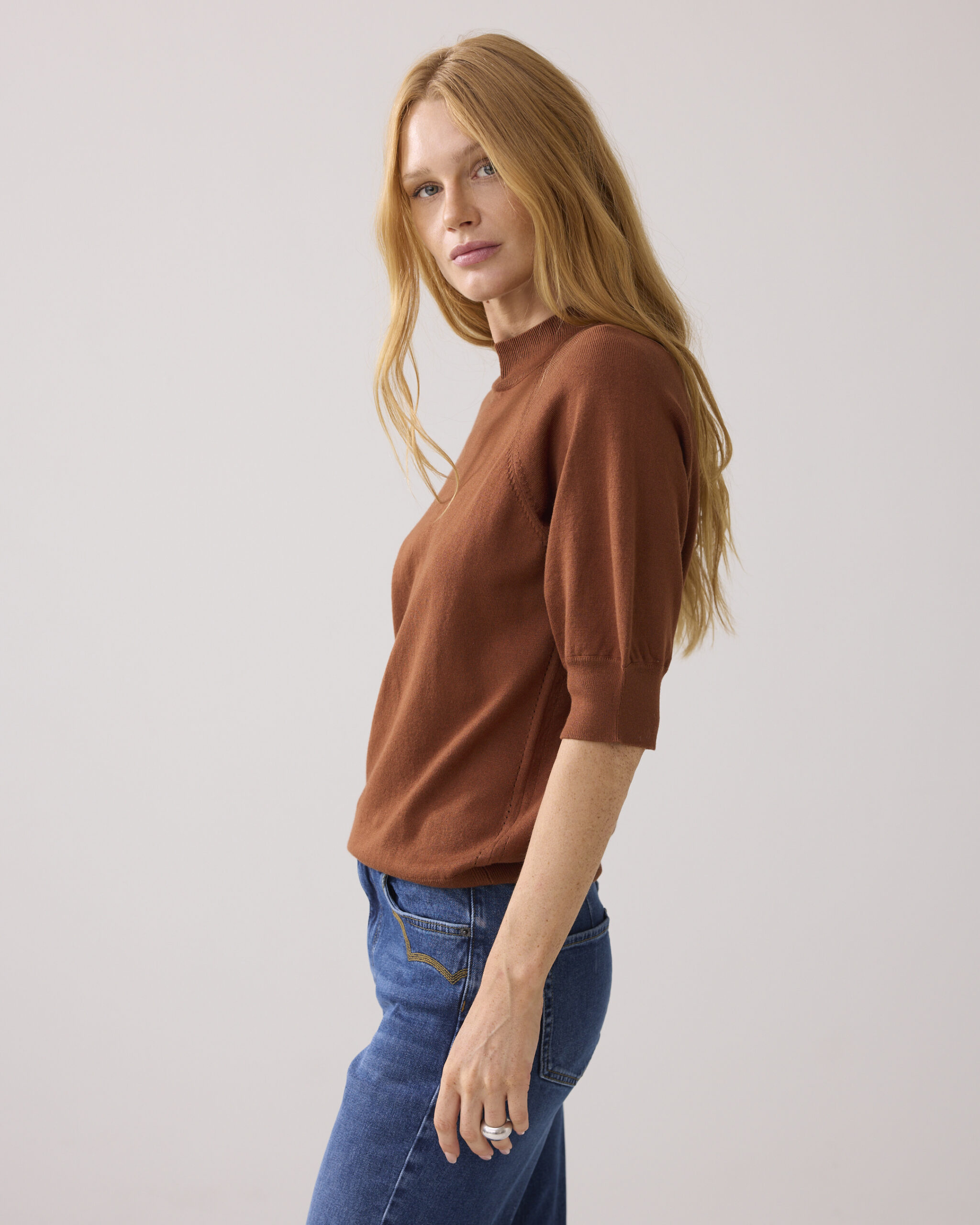 Short sleeve sweater soft viscose polyamide knit van Summum Woman