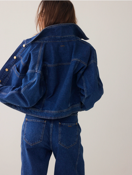 Denim jacket van 100% katoen met een boxy, rechte fit. Het jasje heeft een stonewash finish en grote opgestikte zakken aan de voorkant.